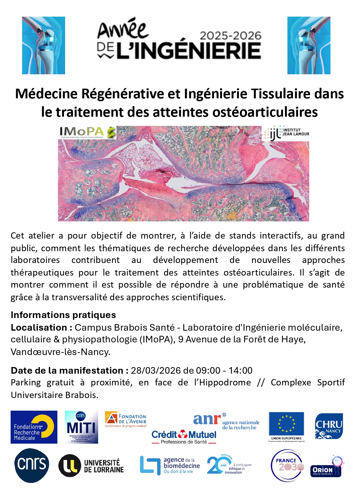 🔬 Découvrez les innovations en médecine régénérative et ingénierie tissulaire pour les atteintes ostéoarticulaires !