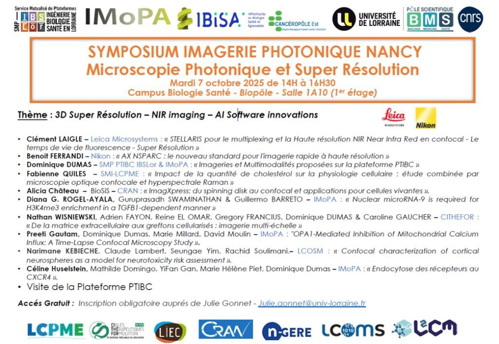 La plateforme PTIBC de l’IBSLOR (Pôle BMS) et l’équipe RemPaCOAT de IMoPA organisent le 7 octobre de 14h à 16h30 un symposium autour de l’imagerie.